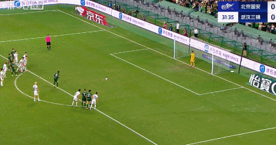第32分钟,法比奥造点后主罚命中,国安1-0三镇